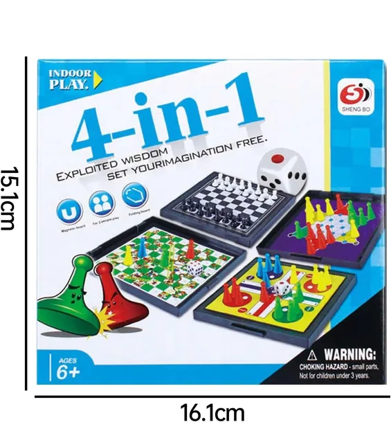 🎲 4w1 Gry Planszowe dla Dzieci – Szachy, Chińczyk, Węże i Drabiny (Wersja Podróżna) ♟️