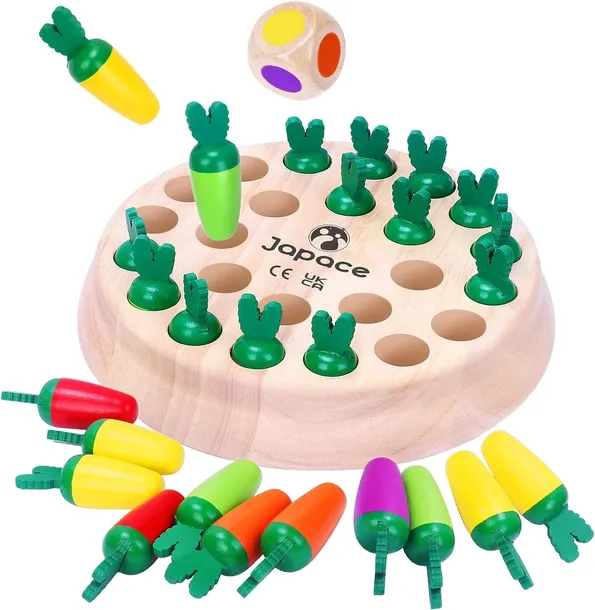 Gra pamięciowa z drewna, szachy z figurkami w kształcie marchewek, zabawka edukacyjna, wspomaga pamięć i koncentrację, rodzinna gra planszowa i gra towarzyska, dla dzieci od 3 lat