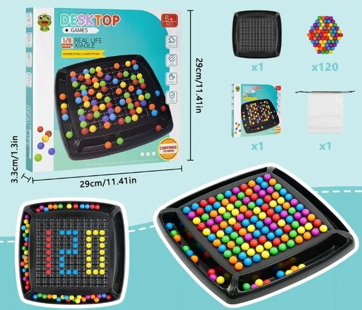 GRA PLANSZOWA SZACHOWNICA LOGICZNA EDUKACYJNA KOLOROWE KULKI DLA DZIECI