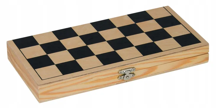 Drewniana szachownica składa się tworząc zamykaną szkatułkę, wewnątrz której znajdują się specjalne przegródki do układania drewnianych figur.