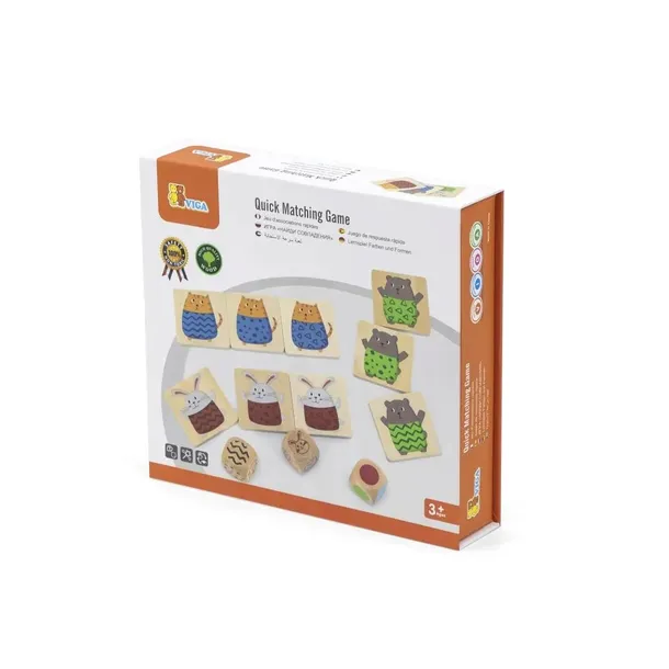 - Wariant 3 (trudny) - rzucaj wszystkimi kostkami a następnie zlokalizuj i dobierz jedyny pasujący element układanki np. niebieski kotek w paski, zielony królik w kropki lub czerwony niedźwiedź w trójkąty. W tym wariancie losując rzut macie tylko 1 możliwy element do podniesienia.