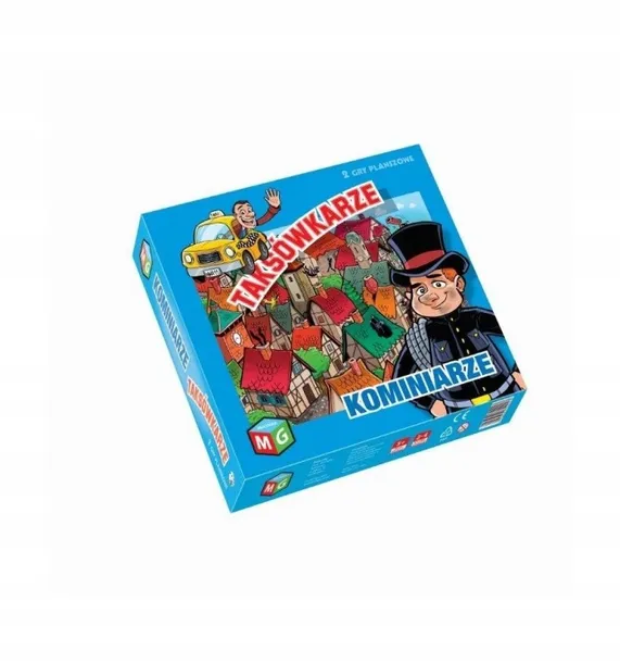 Zestaw zawiera 2 gry planszowe: TAKSÓWKARZE - zostając taksówkarzem każdy gracz musi dojechać na postój taksówek, zabrać pasażera i dowieźć go jak najszybciej do domu.