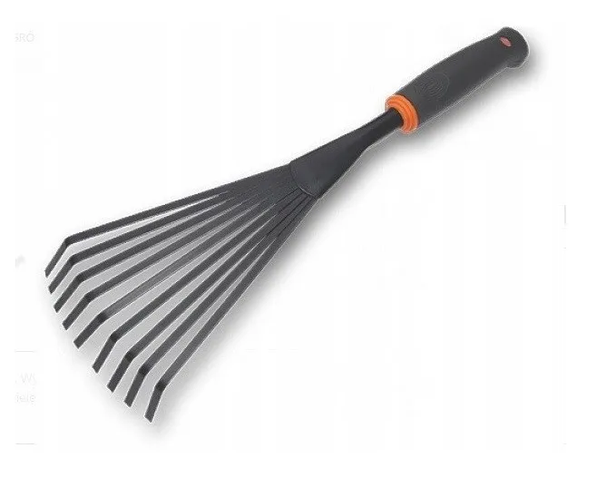 Miotło-grabki ogrodnicze "DE LUXE". Wykonane z wysokiej jakości stali, wyposażone w ergonomiczny miękki uchwyt. Stosowane do zamiatania liści i chwastów oraz pielęgnacji przestrzeni pomiędzy roślinami. Szerokość robocza: 12 cm