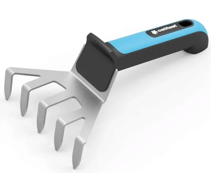 - zęby z wysokiej jakości stali nierdzewnej posiadają łagodne krawędzie bezpieczne dla roślin