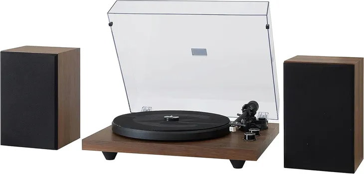 Zestaw zawiera dwa drewniane głośniki stereo, dzięki czemu gramofon jest gotowy do pracy od razu po podłączeniu.