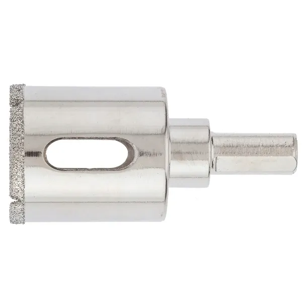 o średnicy 25.0 mm posiada ostrze, galwanicznie pokryte nasypem diamentowym. Pozwala to wiercić otwory w bardzo twardych materiałach ceramicznych i mineralnych (gres, granit, marmur).