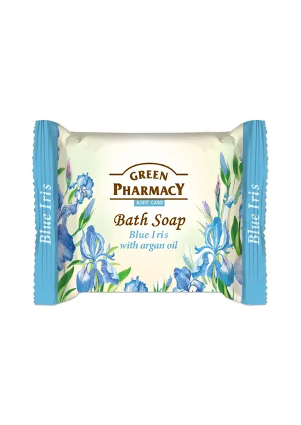 Pielęgnacyjna formuła mydła toaletowego Green Pharmacy, wzbogacona ekstraktem z niebieskiego irysa, i olejem arganowym, delikatnie i skutecznie oczyszcza skórę. Mydło pozostawia na skórze przyjemny aromat.