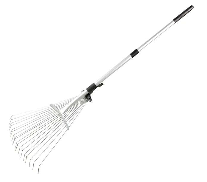 Klasyczne grabie wachlarzowe z lekkim trzonkiem.