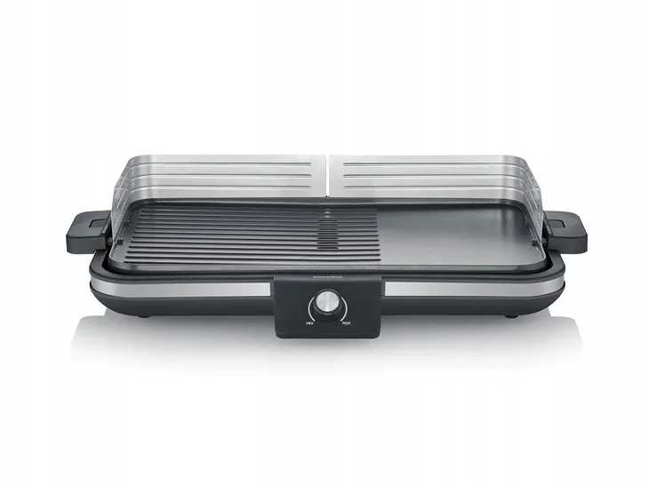 Grill Severin PG 8564 wymaga tylko niewielkiej ilości tłuszczu do grillowania. Ponadto gładka i żebrowana powierzchnia zapewnia powierzchnię do grillowania dla wszystkich rodzajów żywności m.in. do filetów, warzyw i ryb. Nadmiar tłuszczu trafia bezpośrednio do zintegrowanej tacki na tłuszcz, dzięki czemu można go łatwo usunąć.