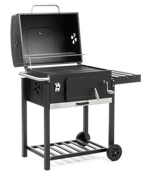 Wspólne spędzanie czasu podczas grillowania stało się szalenie modną rozrywką, dlatego taki grill jest nieodzownym atrybutem każdego posiadacza domu z ogrodem lub działką. Duży grill węglowy z pokrywą wyposażony jest w chromowany ruszt główny i ruszt na węgiel oraz podgrzewacz. Ma zwiększoną powierzchnię grillowania, co daje możliwość przyrządzania urozmaiconych potraw lub większych ilości w tym samym czasie. Praktyczna półka pozwala ustawić pojemnik z mięsem, narzędzia do grillowania i inne przedmioty. Wygodne kółka umożliwiają łatwe przenoszenie grilla z miejsca na miejsce. Ruszt posiada opcję regulacji temperatury.