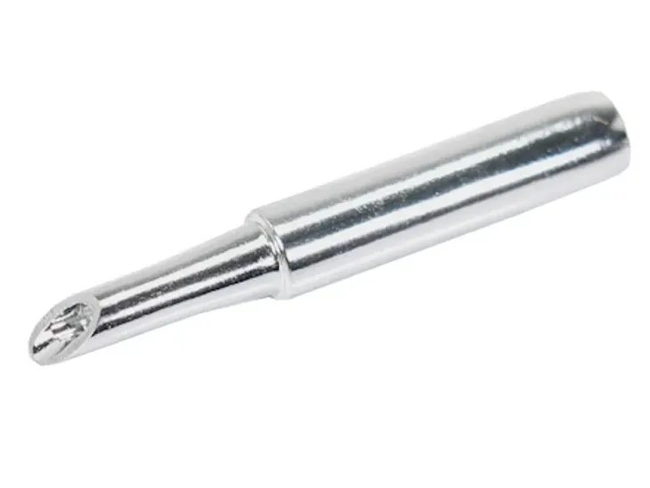 Grot minifala 900M-T-2CM ścięty z otworem będącym zbiornikiem na cynę. Grot typu mini fala używany jest do szybkiego lutowania wyprowadzeń scalonych SMD. Przed użyciem konieczne jest po cynowanie końcówki grota.