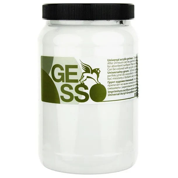 - Gesso to uniwersalny grunt malarski w formie gęstej farby podkładowej,