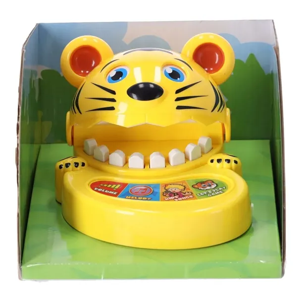 Gra zręcznościowa "Gryzący tygrys" to rozrywka dla całej rodziny, w której uczestniczyć mogą dzieci już od 3-go roku życia. Celem gry jest wykonanie przeglądu dentystycznego u tygrysa.Trzeba zrobić to delikatnie, aby nie zdenerwować zwierzątka,inaczej zamknie usta i ugryzie w palce.Zabawka jest w pełni bezpieczna i zapewni mnóstwo frajdy.
