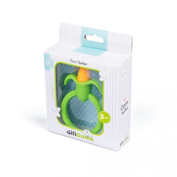 Gryzak w kształcie kukurydzy to pomysł na niebanalny przezent dla każdego ząbkującego malucha! Soczyste kolory zachwycą bobasa, a praktyczne wypustki umieszczone na kolbie kukurydzy i uchwycie zabawki, przyniosą ulgę opuchniętym dziąsełkom.