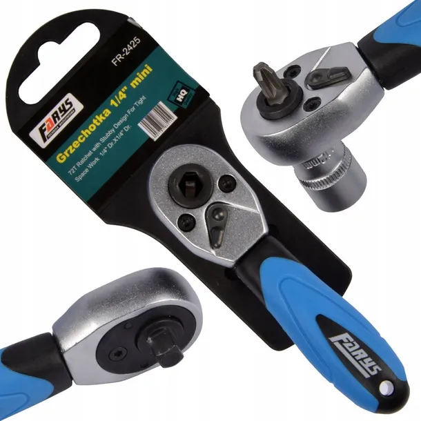 Grzechotka 1/4" do bitów i nasadek Farys wyróżnia się najwyższą jakością wykonania. Jej korpus ze stali stopowej chromowo-wanadowej gwarantuje wytrzymałość i trwałość, pozwalając na bezproblemowe użytkowanie nawet w najbardziej wymagających warunkach.