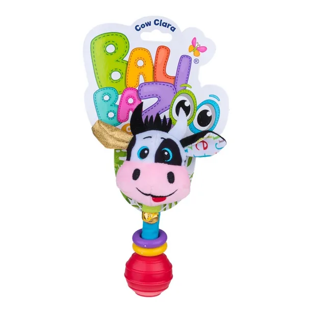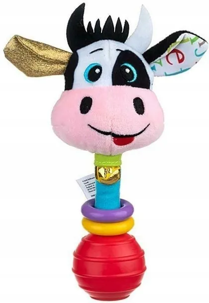 Grzechotka Krowa KlaraUrocza Clara, choć jest krówką, bardzo lubi bł złote uszko i malutki złoty dzwoneczek na szyi. Jakby tego było mało, nosi na niej też dwie kolorowe, ruchome obrę maluch potrząśnie kuleczką, na której siedzi Clara, krówka będzie bujała się na wszystkie strony radośnie grzechocząc.Zabawka przeznaczona dla dzieci od dnia narodzin.
