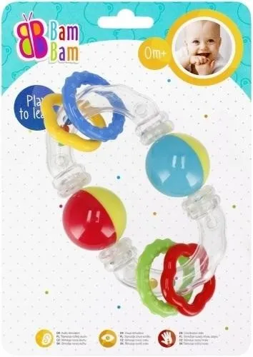 GRZECHOTKA KULA przeznaczona dla niemowląt od urodzenia. W intensywnej kolorystyce, o zróżnicowanej fakturze materiałów jak i różnorodnej formie. Posiada elementy interaktywne zachęcające malucha do zabawy, stymulując rozwój jego zmysłów wzroku, słuchu oraz zdolności motorycznych. Dodatkowe elementy, jak obracające się kuleczki we wnętrzu grzechotki czy kolorowe krążki oraz kule na obręczy uatrakcyjniają zabawę, wspierając równocześnie rozwój zdolności manualnych i motoryki mniejszej. Wymiary/waga/baterie: wymiary produktu (dł. x wys. x gł.)[cm]: 12x8x4, wymiary opakowania (dł. x wys. x gł.)[cm]: 15x20x4, waga produktu bez opakowania [kg]: 0,05 kg, waga produktu w opakowaniu [kg]: 0,08 kg, nie wymaga zasilania bateriami. Grzechotka przeznaczona dla dzieci w wieku: 0m+. Pakowana na blistrze. W kartonie zbiorczym po 60 szt.