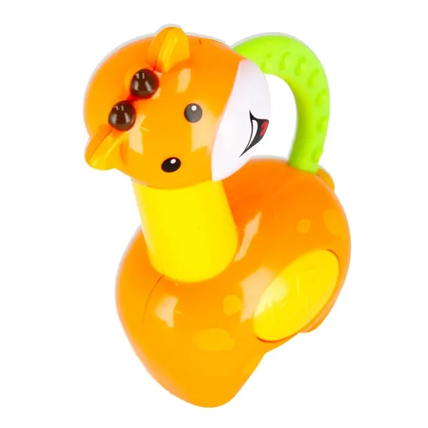 Zalety produktu: Grzechotka Łoś BAM BAM przeznaczona dla niemowląt od 3 miesiąca życia. Intensywna kolorystyka, zróżnicowana faktura oraz kształt w postaci łosia sprawiają, że grzechotka jest doskonałą zabawką edukacyjną. Posiada elementy interaktywne zachęcające malucha do zabawy, stymulując rozwój jego zmysłów wzroku, słuchu oraz zdolności motorycznych. Zielony uchwyt ułatwia chwytanie zabawki i utrzymanie jej w małych rączkach. Wymiary/waga/baterie: wymiary produktu dł. x wys. x gł. cm 8x13x5, waga produktu kg. 0,05. Wymiary opakowania dł. x wys. x gł. cm 15x21x6, waga opakowania kg. 0,08 Nie wymaga zasilania bateriami.