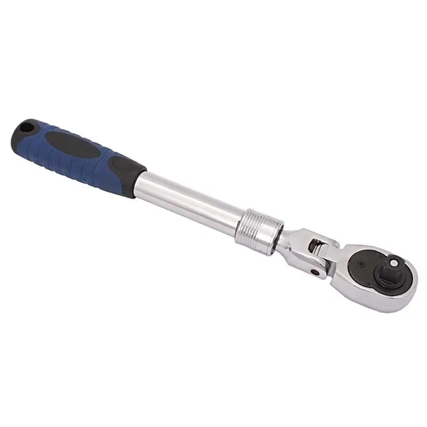 Ręczna grzechotka z mocowaniem o profilu kwadratowym 1/2" z kulką oraz głowicą przegubową.