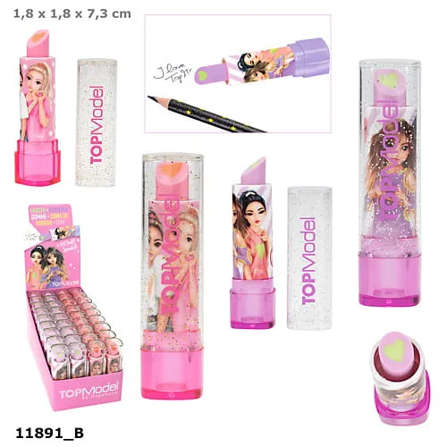 Gumka do ścierania w kształcie szminki Top Model, pachnąca. Dwa wzory do wyboru: różowy dół, fioletowy dół.