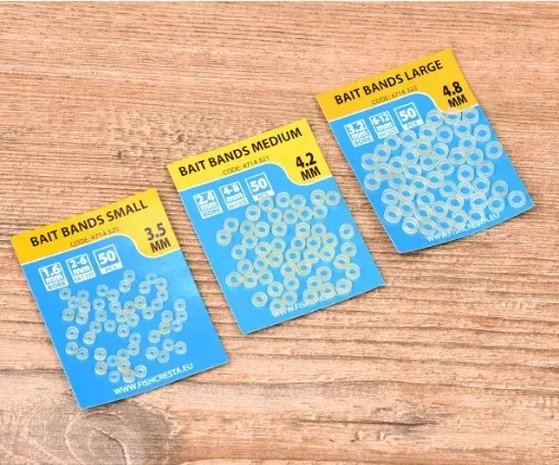 resta Opaski na przynęty wykonane są z bardzo wysokiej jakości naturalnego lateksu. Mają wysoki stopień elastyczności i są bardzo trwałe. Proste cięcie na precyzyjnej szerokości zapewnia, że każda opaska na przynętę może być idealnie zamontowana na włosie, a przynęta może być łatwo przymocowana. Dostępne w rozmiarach Small, Medium i Large.
