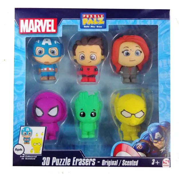 Zestaw zawiera 6 zapachowych i kolorowych gumek do składania z bohaterami: