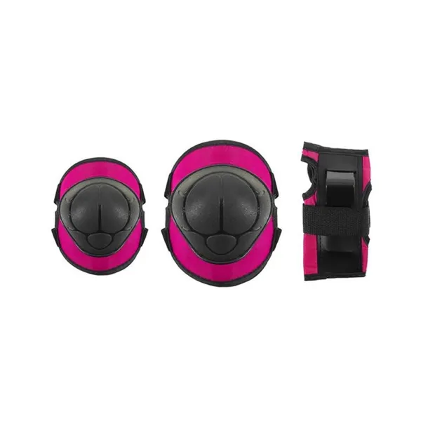 Zestaw ochraniaczy na nadgarstki, łokcie i kolana. Wykonany z wysokiej jakości materiałów. Skorupa zaprojektowana z mocnego i lekkiego tworzywa dobrze wyprofilowana. Wszystkie ochraniacze wyposażone są w zapięcie na rzepy, dzięki czemu utrzymują ochraniacze we właściwym miejscu. Zaprojektowane tak, aby użytkownik czuł się komfortowo i w maksymalnym stopniu zabezpieczał nadgarstki, łokcie i kolana przed urazami.