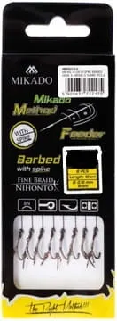 Profesjonalne przypony Method Feeder zawiązane na miękkiej i mocnej plecionka Mikado Fine Braid z hakami BKK, wyposażone w igłę do szybkiego montażu przynęty. Gotowe zestawy dedykowane połowom większych ryb, szczególnie na łowiskach komercyjnych.