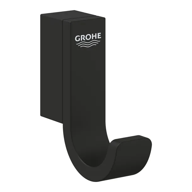 Haczyk Grohe Selection w kolorze czarnym matowym (numer katalogowy 41216KF0) to elegancki i funkcjonalny element wyposażenia łazienki. Wykonany z metalu, charakteryzuje się solidną konstrukcją i trwałością. Wykończenie w kolorze Phantom Black nadaje mu nowoczesny, minimalistyczny wygląd, który doskonale komponuje się w różnych stylach łazienek. Haczyk posiada ukryte mocowanie, co zapewnia estetyczny montaż bez widocznych elementów mocujących. Dzięki powłoce chromowanej GROHE Long-Life, haczyk jest odporny na zarysowania i łatwy w utrzymaniu czystości. Produkt z serii Professional łączy funkcjonalność z eleganckim designem, idealny do współczesnych łazienek.