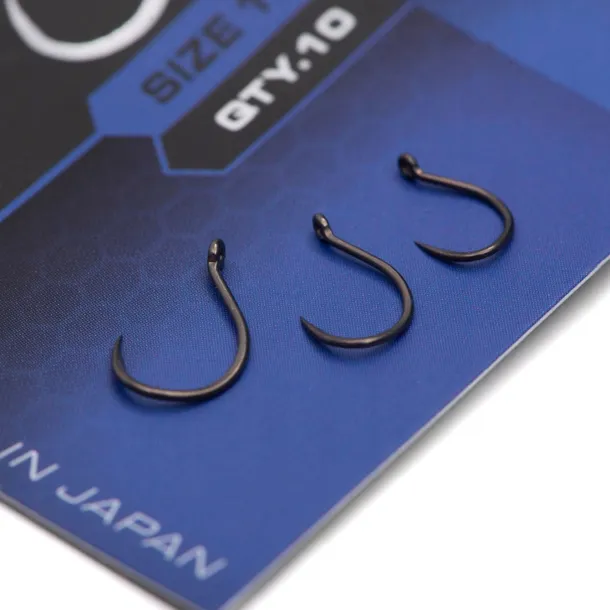 - Haczyki o okrągłym kształcie z szerokim rozwarciem, powlekane PTFE