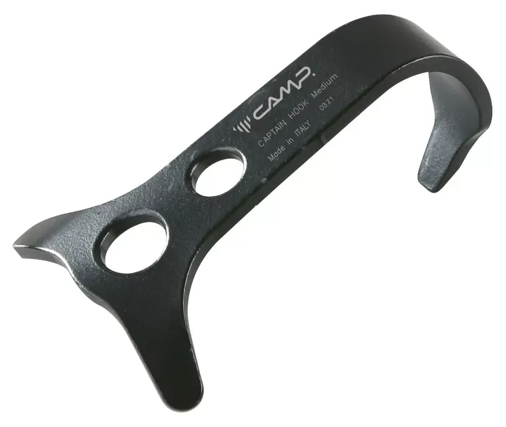 Hak Cassina, wyposażony w dodatkowe "nóżki" stabilizujące hak w trakcie obciążenia. Dwa otwory umożliwiają stosowanie szerokiej i wąskiej taśmy.