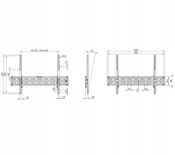 - Wymiary uchwytu: 620 x 420 x 28 mm