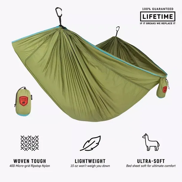 Nowa generacja tkanych hamaków dla odkrywców. TrunkTech został stworzony specjalnie do szycia hamaków. Jest to zaawansowany technologicznie materiał zapewniający niespotykaną miękkość i wytrzymałość, którą docenią wszyscy użytkownicy. Hamaki z materiału TrunkTech zajmują blisko połowę mniej miejsca niż hamaki z tradycyjnego nylonu spadochronowego i są niemal połowę lżejsze. Wszystko to jest możliwe za sprawą specjalnego splotu materiału Nylon Ripstop. Spleciony jak forteca i zaprojektowany, aby dostarczać niespotykany komfort i miękkość, TrunkTech stanowi przyszłość hamaków turystycznych. Jest przyjemny w dotyku, lekki i wytrzymały.