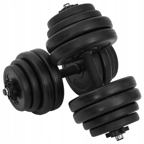 Ten ergonomiczny zestaw hantli ma całkowitą wagę 30 kg (2 x 15 kg).