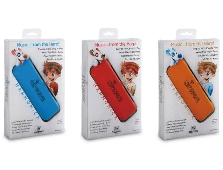 Harmonijki AirWave to harmonijka zaprojektowana specjalnie dla dzieci. Instrument został wyposażony w 10 okrągłych otworów, które są rozmieszczone szeroko aby ułatwić wydobycie czystego dźwięku co bardzo pomaga w grze. Dla bezpieczeństwa dzieci, stroiki zostały umieszczone w plastikowej obudowie która nie posiada żadnych ostrych krawędzi. Kolorowa obudowa dodaje harmonijce przyjemnego wyglądu.
