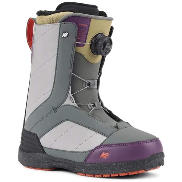 Buty Haven charakteryzuje miękki flex i prostota budowy. Haven posiadają system wiązania BOA oraz doskonale dopasowujący się but wewnętrzny. Buty K2 Haven mają twardość 4/10, jest to idealny flex dla osoby początkującej jak również dla kobiety szukającej wygodnego buta na cały dzień.