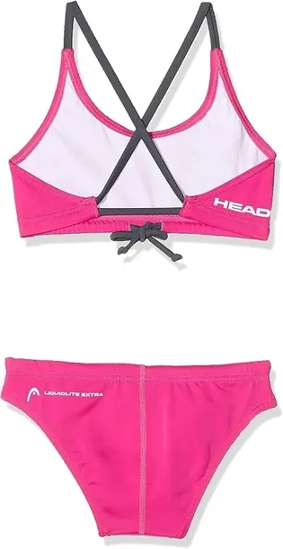 Bikini firmy Head wykonane z materiału nylon/lycra z wysoko wyciętymi nogawkami. Odporny na chlor. Kombinezon ma bardzo fajny krój. Górną część można wiązać pod biustem i razem między piersiami, dzięki czemu staje się jak „bikini” zwężające się między piersiami. Idealne, gdy chcesz się opalać! Rozmiary podane są w rozmiarach UE.