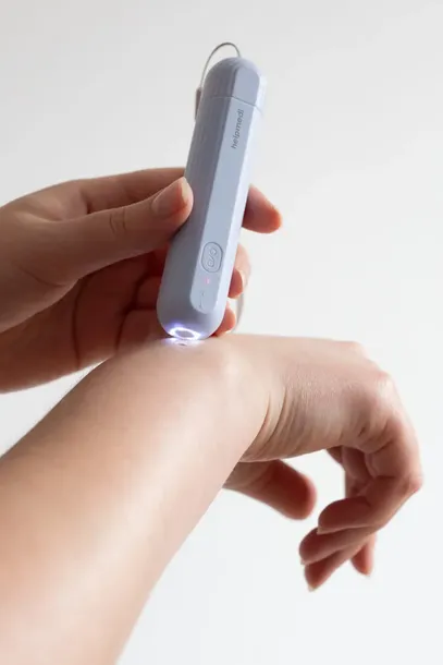 HelpMedi StingCare to nowoczesne, przenośne urządzenie, które wykorzystuje ciepło, aby szybko i skutecznie łagodzić świąd oraz ból spowodowany użądleniami i ukąszeniami owadów.