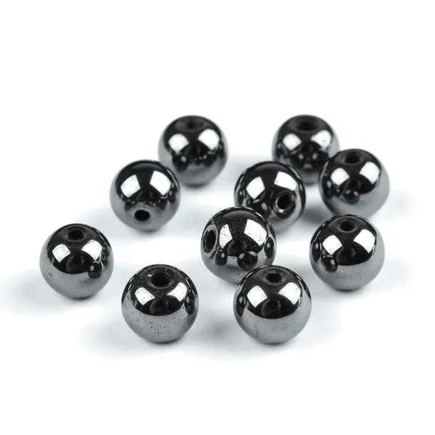Piękne koraliki z naturalnego minerału - Hematyt. Pakowane po 10 szt. w woreczku strunowym. Super Cena!! Średnica 8mm, wielkość otworu około 1,5mm.