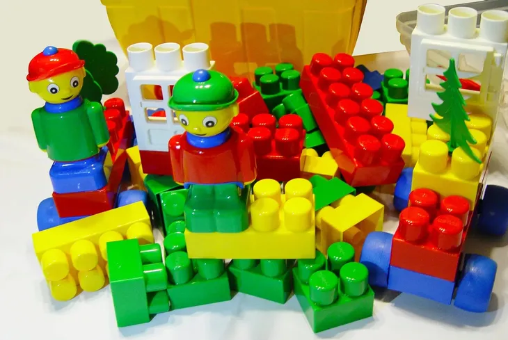 Klocki występują w 4 kolorach - czerwony, niebieski, zielony, żółty.