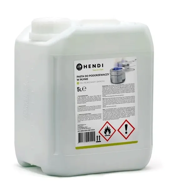 Ta wysokiej jakości pasta do podgrzewaczy Hendi o pojemności 5 l (kod 195505) wyróżnia się niezawodną formułą opartą na naturalnym (bio) alkoholu etylowym, zapewniającą stabilne i długotrwałe ciepło w podgrzewaczach gastronomicznych. Idealna do utrzymania optymalnej temperatury potraw, gwarantuje precyzyjne działanie bez niespodzianek.