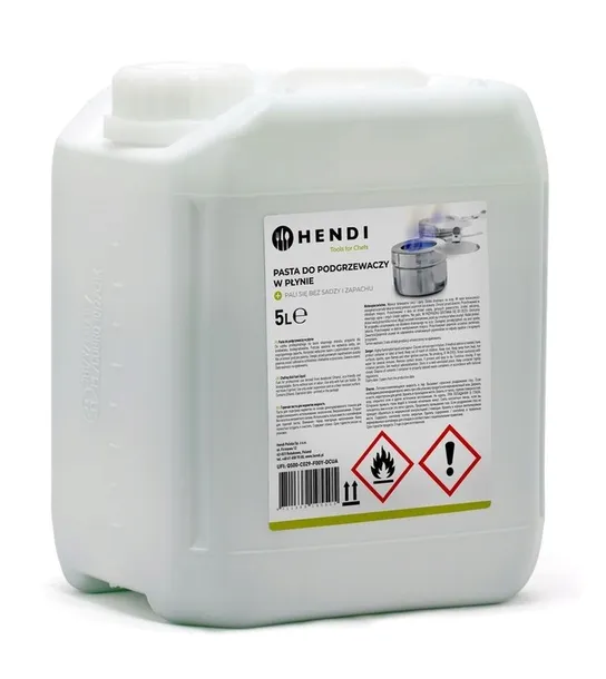Ta wysokiej jakości pasta do podgrzewaczy Hendi o pojemności 5 l (kod 195505) wyróżnia się niezawodną formułą opartą na naturalnym (bio) alkoholu etylowym, zapewniającą stabilne i długotrwałe ciepło w podgrzewaczach gastronomicznych. Idealna do utrzymania optymalnej temperatury potraw, gwarantuje precyzyjne działanie bez niespodzianek.