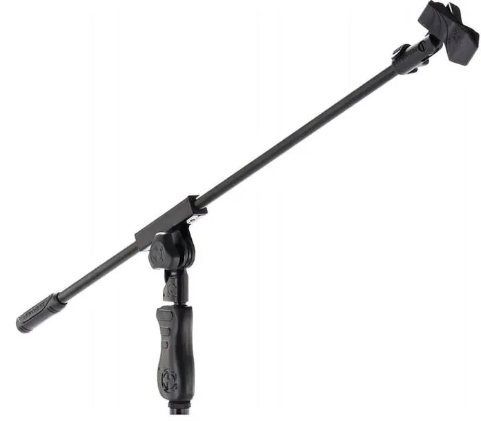 Statyw mikrofonowy na trójnogu HERCULES MS631B PLUS posiada klips mikrofonowy EZ Mic Clip, uchwyt wysięgnika EZ Boom Retainer oraz regulację wysokości EZ Grip.
