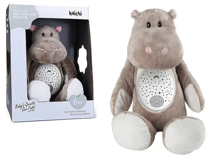 hipopotam pluszowy z projektorem, 35x27x20cm, W/B