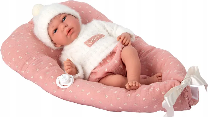 BOBAS MUNECAS ARIAS Nr katalogowy: 60901 Prześliczna hiszpańska laleczka Munecas Arias została wykonana z hiszpańskiego winylu i miękkiego materiału. Głowa laleczki, rączki aż do ramion i nóżki do ud - wykonane są z winylu. Korpus - wykonany został z miękkiego materiału. Laleczka dociążona do wagi prawdziwego dziecka. Laleczka posiada namalowaną ślinkę w kąciku ust oraz katarek w nosku. Laleczka posiada:- czapeczkę,- sweterek,- majteczki,- poduszeczkę,- smoczek. Wysokość produktu: 40 cm Laleczka zapakowana w ozdobny kartonik.