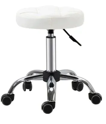 Posiada miękkie i obrotowe siedzisko obite ekoskórą oraz stabilną podstawę z pięcioma obrotowymi kółkami, które nie rysują podłogi.