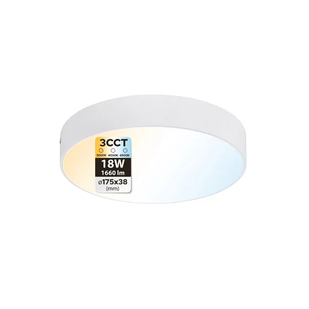 Plafon natynkowy LED 18W, 1660lm, 3CCT, IP20, okrągły, biały, CATALINA | HOROZ | 016-081-1018/WH