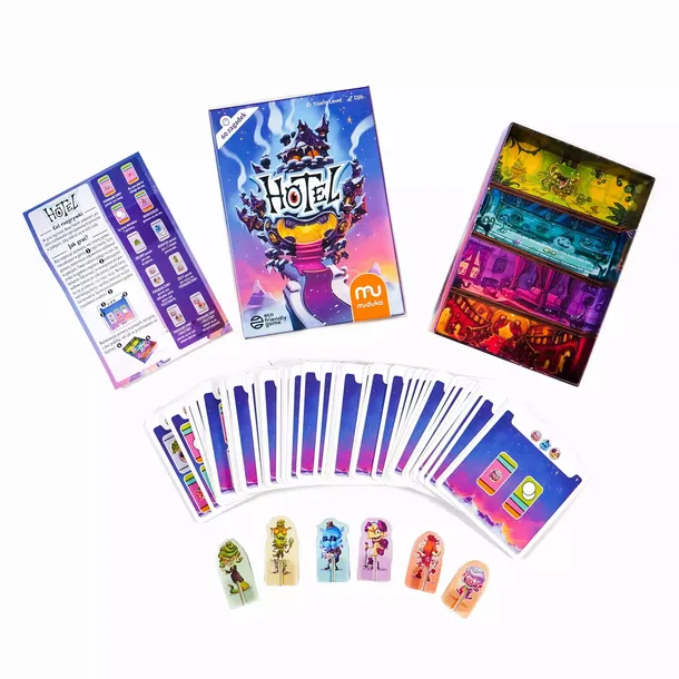 Wskaż potworkom właściwe miejsce w hotelu! Weź kartę, rozwiąż zagadkę i umieść wybrane potworki na dobrych piętrach. Jest tylko jedno rozwiązanie zagadki. Znajdziesz je na rewersie karty. Poprowadź hotel dla potwornie wymagających gości. Ulokuj ich w pokojach, które spełnią ich wyśrubowane oczekiwania. Każdy z gości ma własne życzenia – niektórzy będą chcieli być ulokowani tylko na wybranym piętrze, inni nie pogardzą towarzystwem mumii, a jeszcze inni będą chcieli mieć pokój wyłącznie dla siebie. Zmierz się z 60 wyzwaniami o narastającym poziomie trudności – każda łamigłówka ma wyłącznie jedno dobre rozwiązanie! „Hotel” to kompaktowa, kolorowa pozycja dla 1 gracza, która będzie doskonałym prezentem dla fanów łamigłówek i logicznych wyzwań. Dzięki zróżnicowanemu poziomowi trudności nie będą nudzić się tu ani siedmiolatki, ani dorośli gracze.