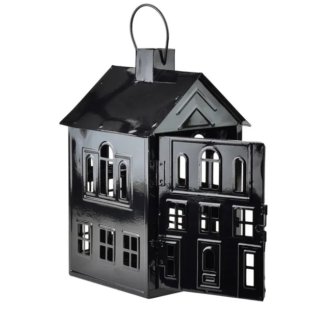 Domek lampion 20,3 x 20 x h33,8 cm. Stylowy lampion w formie domku wykonany z metalu, który łączy w sobie prostotę i elegancję. Dzięki swojej konstrukcji doskonale sprawdzi się jako nastrojowe źródło światła, idealny zarówno do wnętrz, jak i na taras czy balkon. Można w nim umieścić świecę LED lub tradycyjną woskową,co pozwala stworzyć przytulną atmosferę i wyjątkowy klimat. Solidne wykonanie gwarantuje trwałość, a dekoracyjna forma sprawia, że lampion staje się efektownym elementem aranżacji przestrzeni.