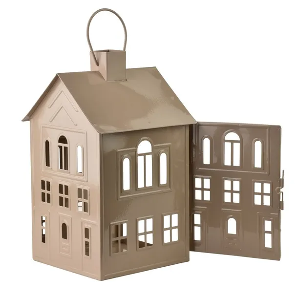 Domek lampion 20,3 x 20 x h33,8 cm. Stylowy lampion w formie domku wykonany z metalu, który łączy w sobie prostotę i elegancję. Dzięki swojej konstrukcji doskonale sprawdzi się jako nastrojowe źródło światła, idealny zarówno do wnętrz, jak i na taras czy balkon. Można w nim umieścić świecę LED lub tradycyjną woskową,co pozwala stworzyć przytulną atmosferę i wyjątkowy klimat. Solidne wykonanie gwarantuje trwałość, a dekoracyjna forma sprawia, że lampion staje się efektownym elementem aranżacji przestrzeni.